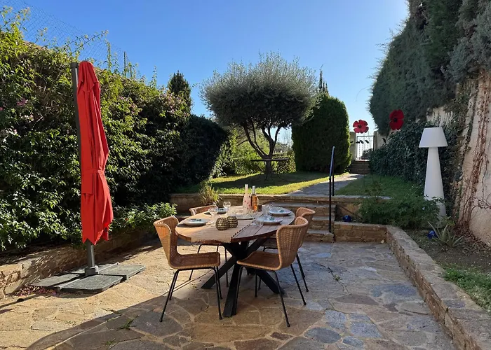Gästerna som bor i lägenheten L'Ecrin Au Super Lavandou Le Lavandou med 1 sovrum, kan besöka Église Saint-Trophyme, som ligger cirka 25 minuter bort till fots. Den här 50 m² stora lägenheten har också en terrass med utsikt över trädgården.